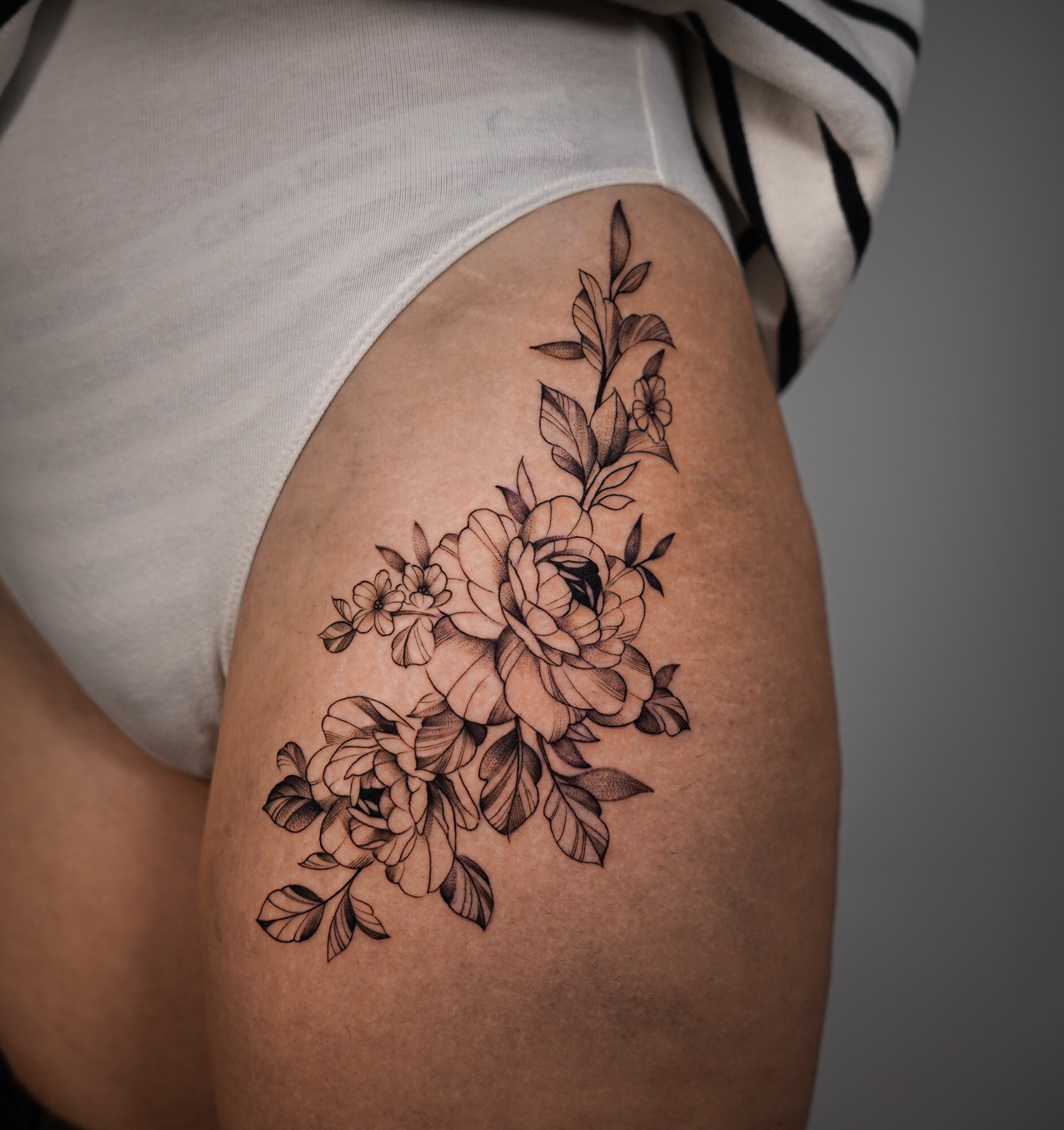 פריחה נצחית על העור שלך - קעקועים פרחוניים מביאים את היופי האורגני והצמיחה המתמדת לגופך. כל עלה ופרח מסמלים התחדשות, יופי ואת העדינות והעוצמה שבמחזוריות החיים.