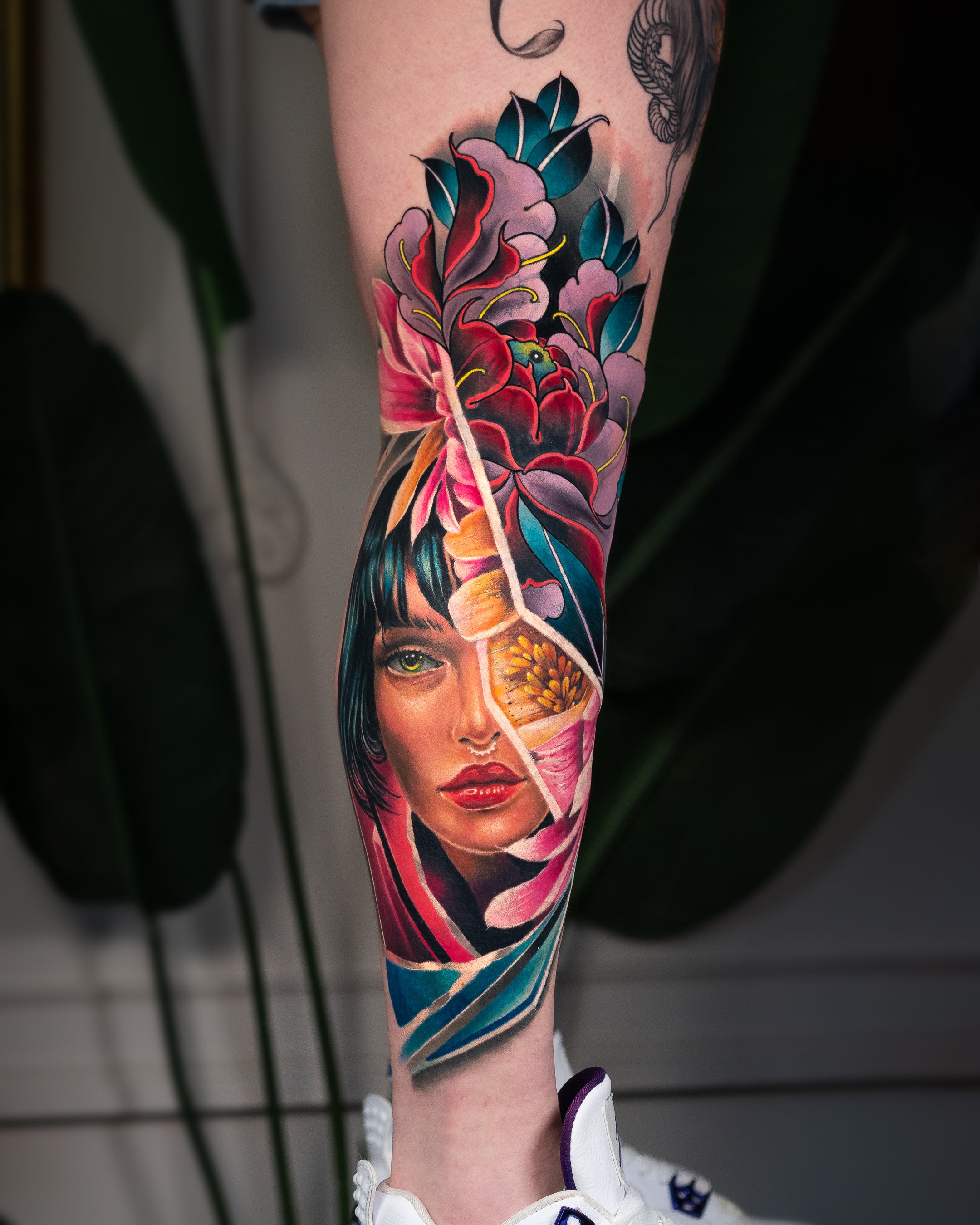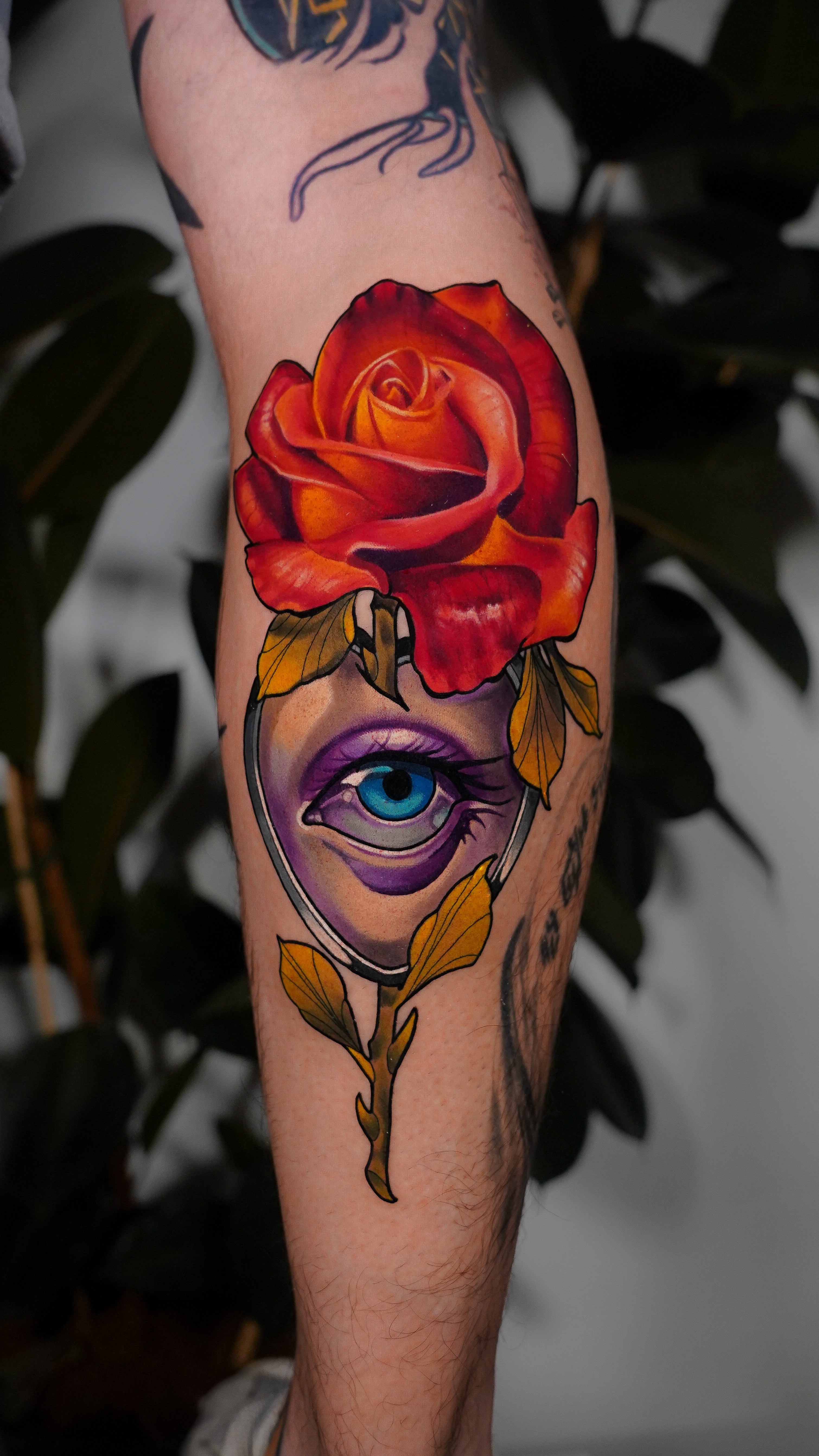 פריצת גבולות של צבע וצורה - סגנון הניו סקול חוגג את החופש האמנותי עם קווים נועזים, צבעים עזים וגישה פורצת דרך. קעקוע שמשלב הומור, אנרגיה וסגנון אישי שלא מתנצל על הנוכחות שלו.